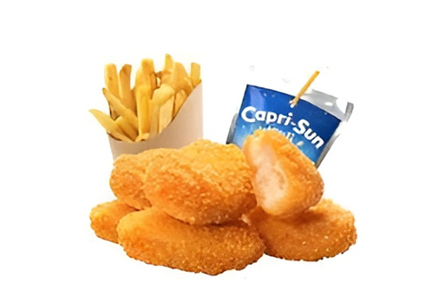 4 Nuggets + frites + Capri Sun + kinder maxi.