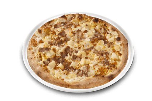 Crème fraîche, mozzarella, poulet, oignons, pommes de terre, boursin.